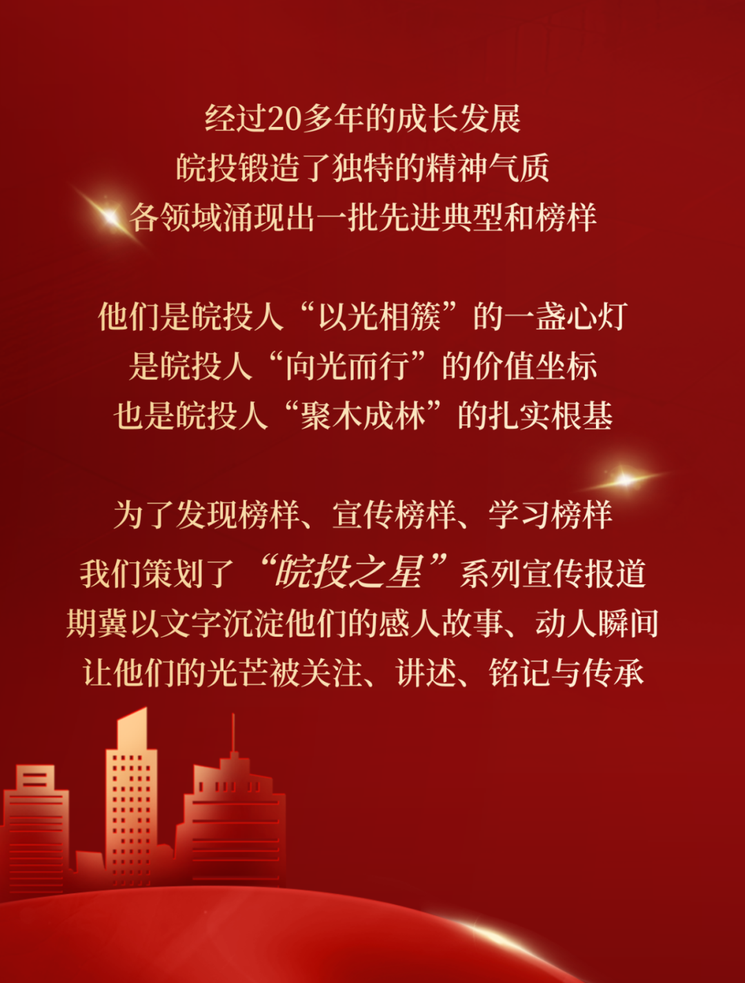 本期“皖投之星”聚焦在集团公司扎实开展深入贯彻中央八项规定精神学习教育中,涌现出的一批勇于攻坚克难、积极担当作为的先进典型人物,学习他们把学习教育成果转化为高质量发展成效的先进事迹。