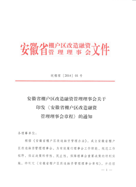 棚改理事会关于印发《省棚改理事会章程》的通知