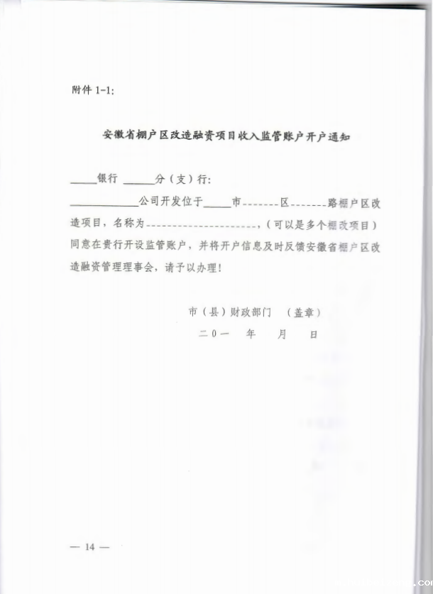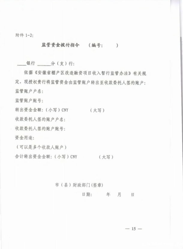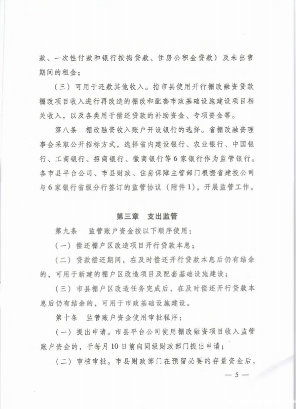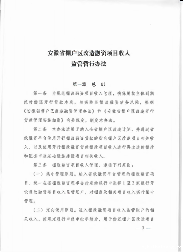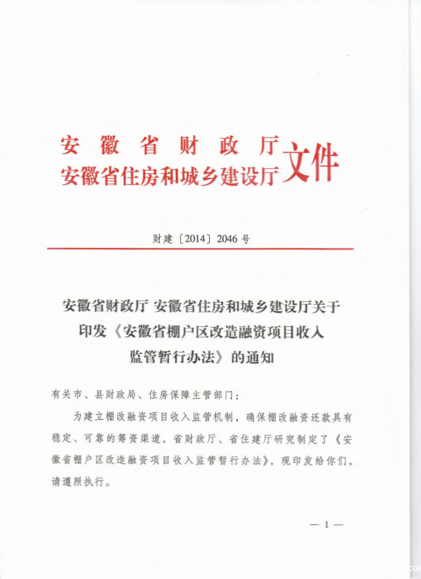 《安徽省棚户区改造融资项目收入监管暂行办法》的通知